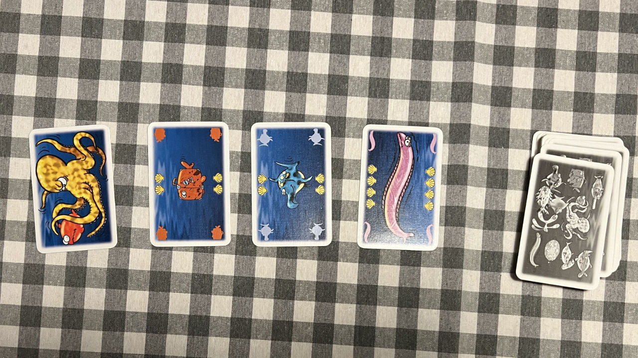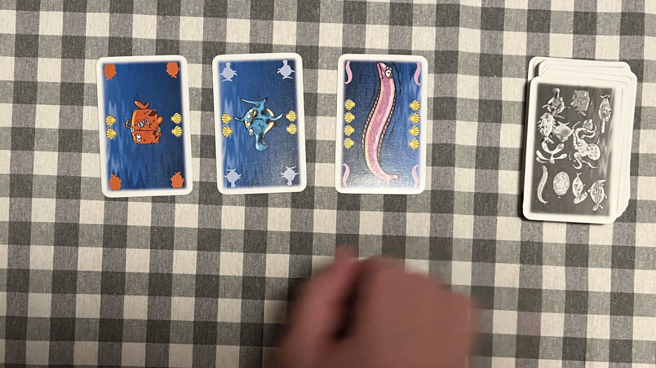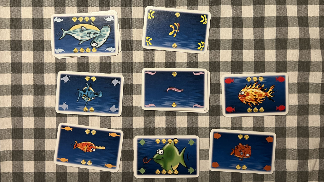 Wir haben einen Kartenstapel mit 10 verschiedenen Fischen in den Wertigkeiten 1 bis 4.