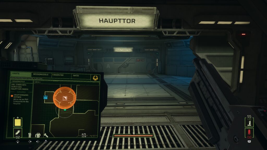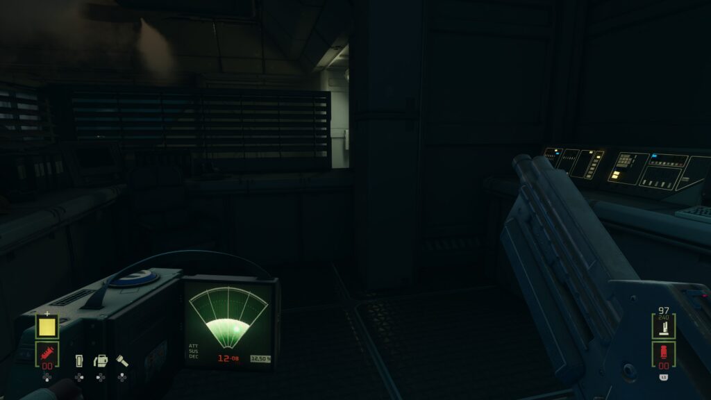 Da kalifornischen Entwickler von den Survios Studios haben sich auch in Richtung Gameplay Gedanken gemacht. Ich mag ja Motion-Tracker und auffindbare Audiologs, die mich genauso an System Shock erinnern, wie das Minigame der Sicherungskästen, um Türen zu öffnen. Bei diesem Minigame oder beispielsweise beim Einsetzen einer Batterie in ein Terminal,merkt man dem Spiel seine VR Herkunft an – mit dem Controller fühlt es sich weniger immersiv, ja eher primitiv an.