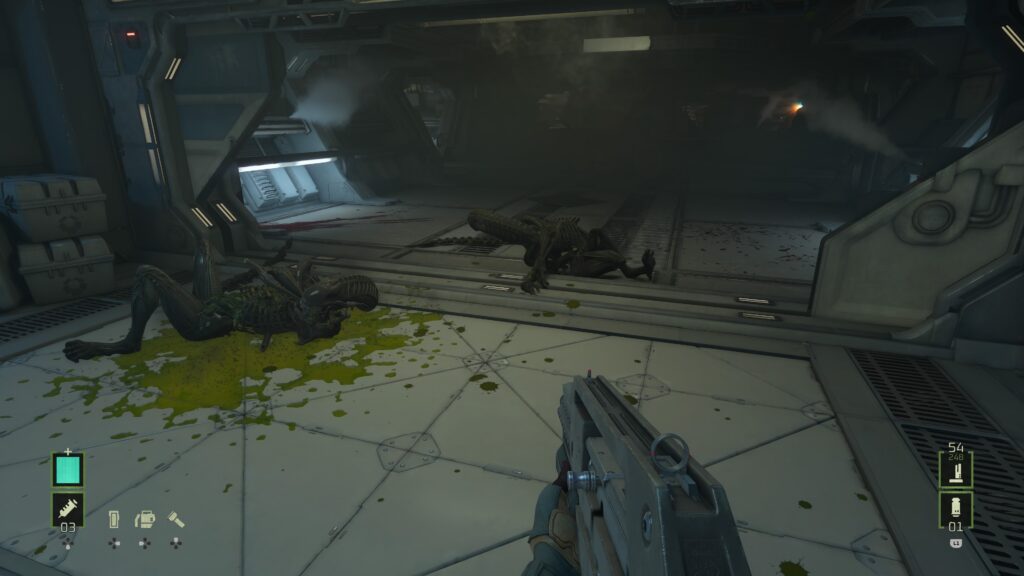 Mich lässt das nicht wirklich zufrieden zurück. Trotz schöner Atmosphäre folge ich den angezeigten Missionspunkten auf der Karte, arbeite die Aliens ab und öffne Türen hier und da. Das ist stumpf und Terminator Resistance oder Robocop Rogue City machen es an dieser Stelle als nicht AAA-Spiele wesentlich besser – von einem Alien Isolation ganz zu schweigen. Warte jetzt lieber auf den Nachfolger von Creative Assembly.