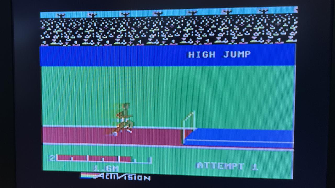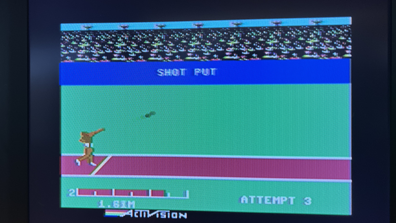 Vor über 40 Jahren brachte uns Decathlon zum schwitzen. Und es ist bis heute gut gealtert. Sicher liegt es an der einfachen Steuerung, denn fast alle Disziplinen im Zehnkampf werden durch schnelles rütteln mit Knopfdrücken zum richtigen Zeitpunkt simuliert. Auch hat der gleichzeitige Mehrspielermodus einen hohen Reiz und motiviert die Spieler gegenseitig, ihre Leistungen zu steigern. Und den 1.500m-Lauf zum Abschluss des Spiels fürchtet man schon zu Beginn des Spiels.
