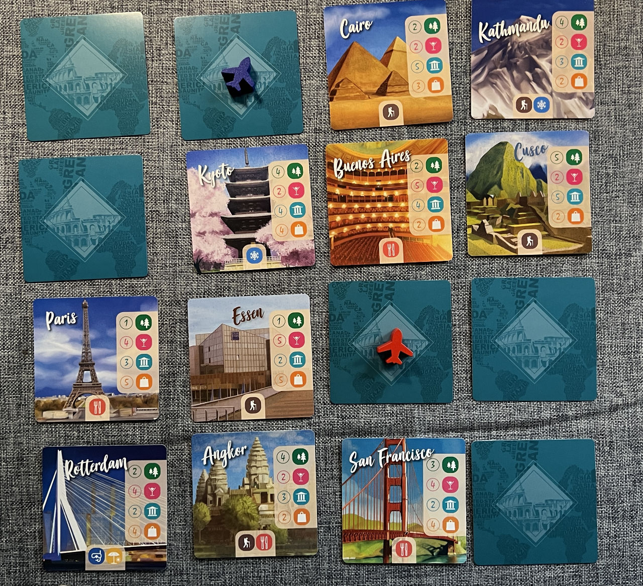 Strategisch gibt es einiges zu bedenken. So muss die Auswahl der Besucher im Reisebüro gut überlegt werden. Denn wir haben nur einen Business-Sitzplatz im Flugzeug, und später auch nur ein VIP-Zimmer im Hotel. Und fliege ich nach Kairo, sollten die Fluggäste auch schon an Kultur interessiert sein und nicht die Shopping-Mall suchen. Denn Siegpunkte gibt es nur für die Flugphase, also die Passung der Touristen zu den Attraktionen. Dafür gibt es aber viele Möglichkeiten Minuspunkte zu bekommen, wenn z.B. der Sitz im Flugzeug dreckig ist oder man zu lange im Reisebüro auf den Start wartet.