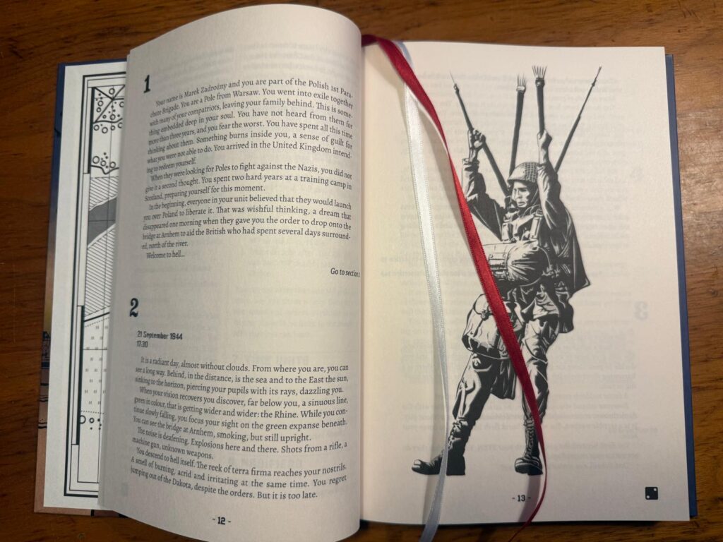 Frisch von der Spielemesse in Essen stürzte mich dieses Choose-Your-Own-Adventure-Buch in einen der härtesten Kämpfe des zweiten Weltkriegs. In der Rolle eines polnischen Fallschirmjägers der 1. unabhängigen Fallschirmbrigade, der hinter feindlichen Linien abgesetzt wird, sehe ich dem sicheren Tod entgegen. Wir wissen, dass die Operation „Market Garden“ Ende September 1944 nicht zu den erfolgreichsten der Alliierten gehörte, also bin ich auf alles gefasst.