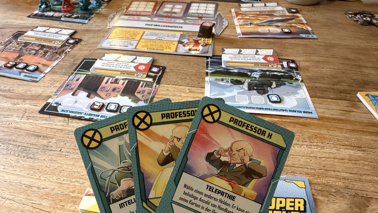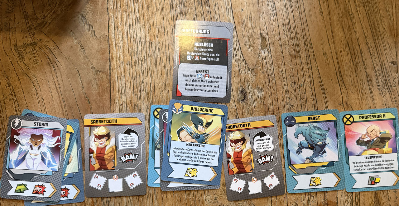 Wir haben den X-Men-Ableger gespielt, das Spielprinzip ist aber immer gleich und recht einfach: Wir X-Men spielen koop gegen einen bösen Gegner aus der Welt der Mutanten. Bei fünf Mitspielern wird der KI-Superschurke durch einen der Spieler ersetzt.