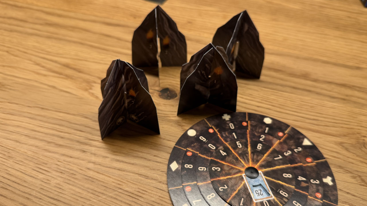 Das Konzept ist nicht neu. Wir haben eine Decodier-Scheibe und müssen zu jedem Abschnitt drei Ziffern auf den Scheibenringen einstellen, so dass dann eine Zahl für die nächste Karte, also dem nächsten Abenteuer, erscheint.