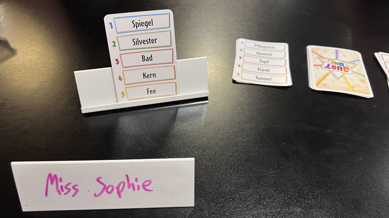 Reihum muss in diesem kooperativen Spiel ein Teammitglied einen Begriff erraten. Hierzu schreiben alle anderen einen Hinweis auf, was diesen Begriff umschreibt. Hierzu sprechen sie sich nicht ab und nachdem jeder einen Begriff notiert hat, werden doppelte aussortiert. Zu einfach sollten die Hinweise also nicht sein.