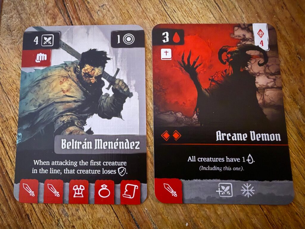 Es gilt also hinabzusteigen, Gegner zu besiegen und sich weiterentwickeln – und das alles in einer großartigen, düsteren Atmosphäre. Leben muss man mit dem Zufall, der einen frustrierend ins Gesicht schlägt oder zufrieden an eine tolle eigene Strategie glauben lässt. Bin gespannt, ob die kommende Erweiterung, die interessanterweise als „Valpiedra 1.5“ gelistet wird, mehr wünschenswert stärkere Charaktere bringt und das Spielerlebnis etwas „einfacher“ macht.