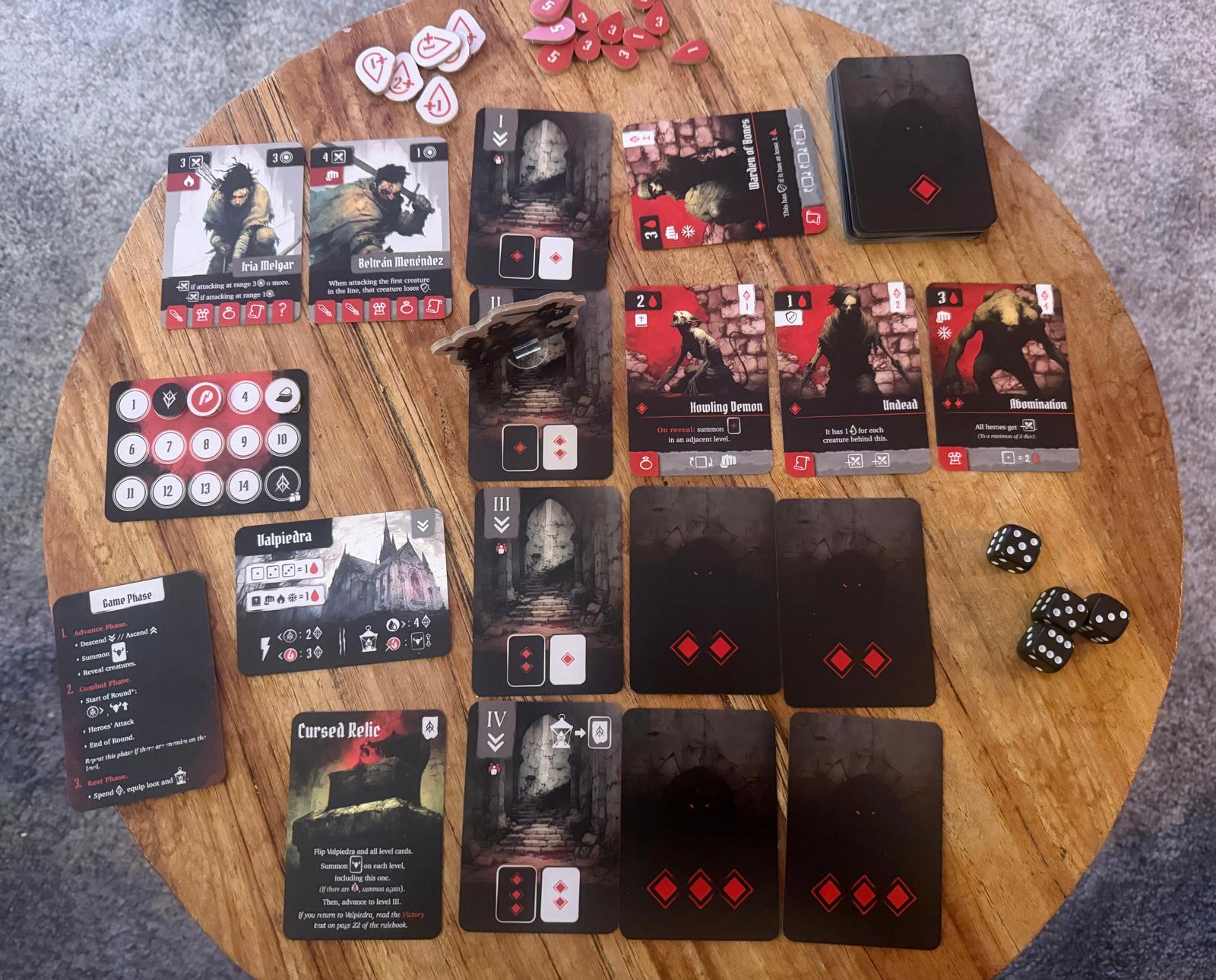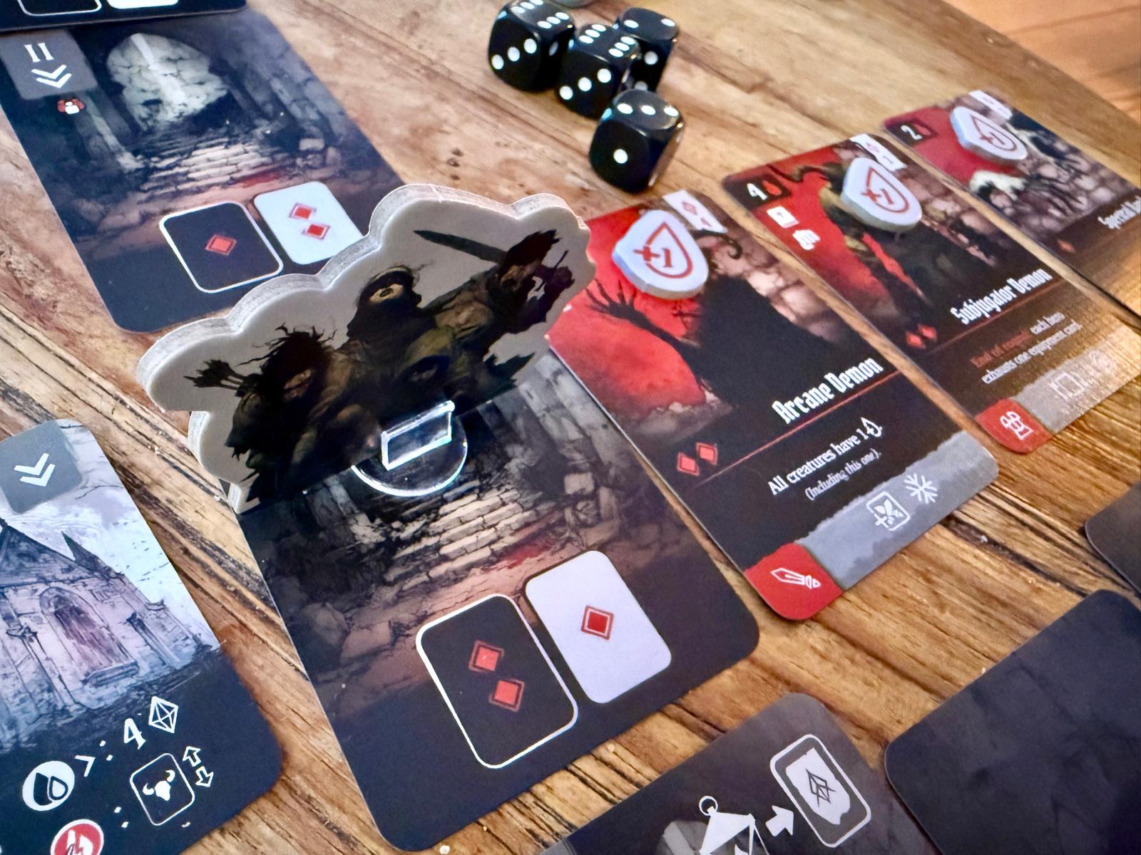 Es gilt also hinabzusteigen, Gegner zu besiegen und sich weiterentwickeln – und das alles in einer großartigen, düsteren Atmosphäre. Leben muss man mit dem Zufall, der einen frustrierend ins Gesicht schlägt oder zufrieden an eine tolle eigene Strategie glauben lässt. Bin gespannt, ob die kommende Erweiterung, die interessanterweise als „Valpiedra 1.5“ gelistet wird, mehr wünschenswert stärkere Charaktere bringt und das Spielerlebnis etwas „einfacher“ macht.