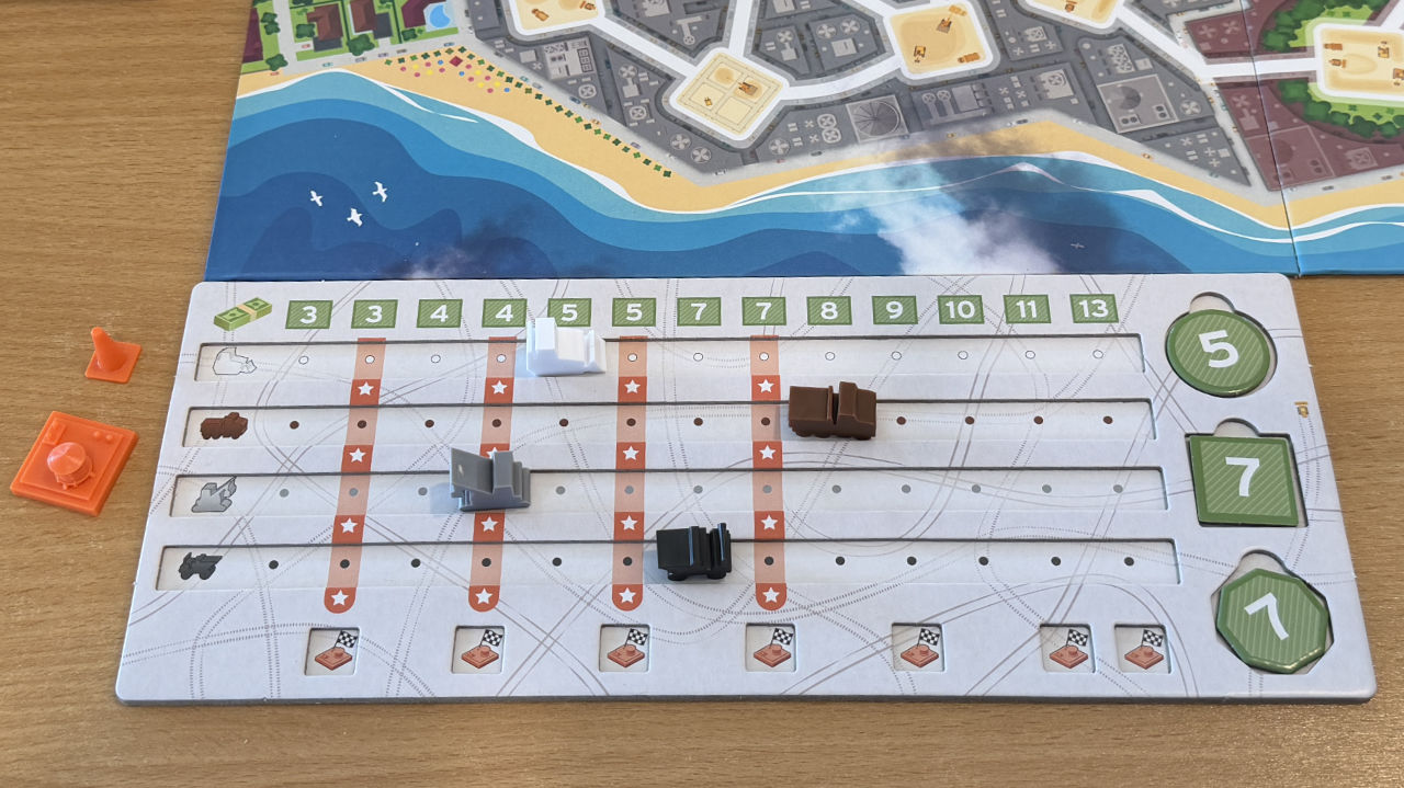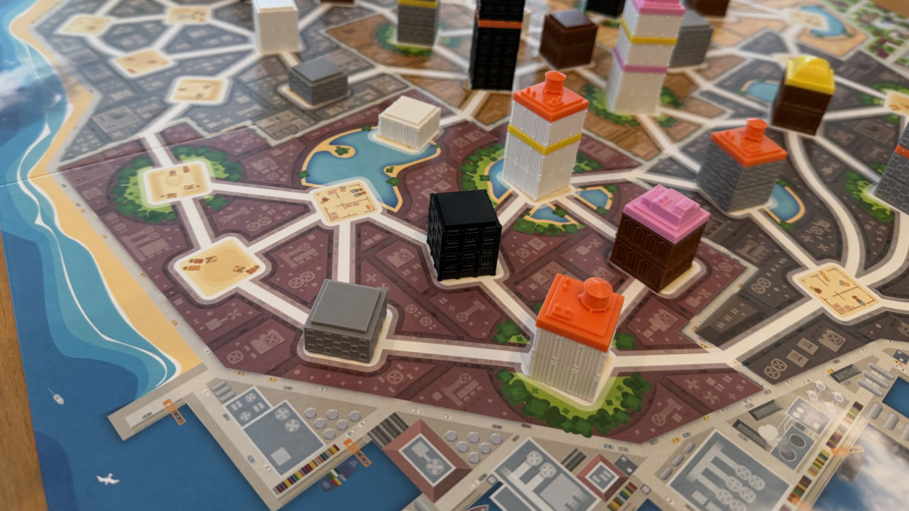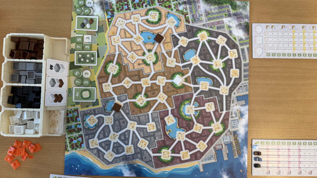 Es ist auch mal schön, Spiele mit einfachen Regeln zu konsumieren. Wir haben Bauklötze in vier Farben und können auf unserem Stadtplan